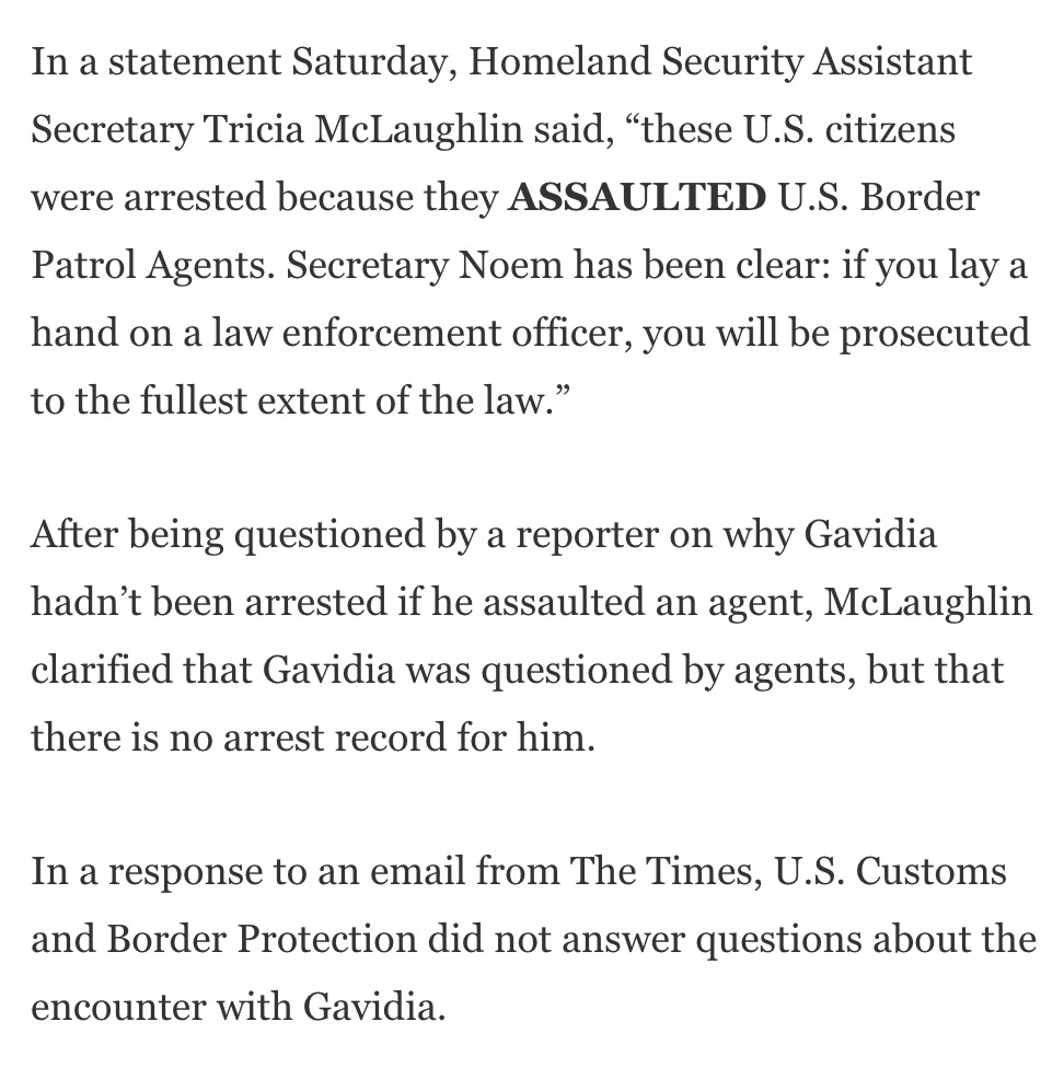 I feel like vomiting. I genuinely feel like vomiting. If I’m Gavidia, I get myself an attorney and I get myself a publicist, and I go network to network and website to website, telling my story, showing my video. I sue the ass off the arresting agent, sue the ass off of Tricia McLaughlin (for defamation) and sue the ass of of Kristi Noem for all levels of unjustified PTSD impact.