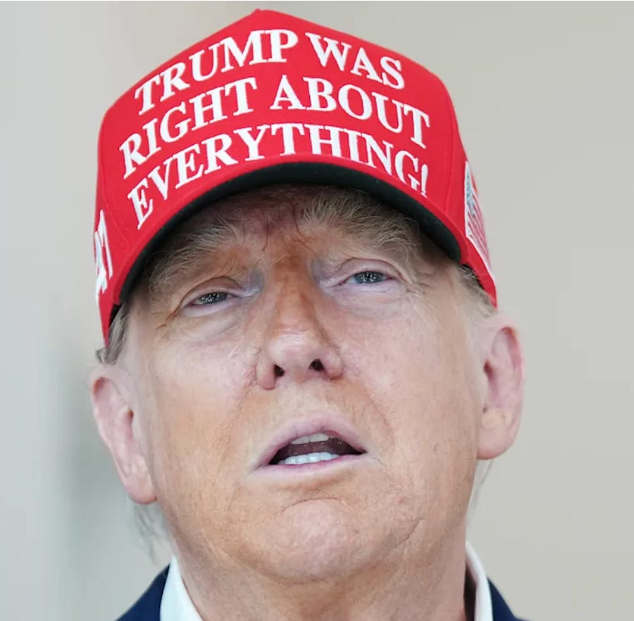 Do you think Ronald Reagan would greet bad economic numbers by firing the economist who delivered the numbers? D you think Ronald Reagan’s approach to homelessness would be grabbing tents and sleeping bags of the unhoused and throwing them away? Do you think Ronald Reagan would mock people as fat, ugly, stupid, dumb, gross, slobbery? Do you think Ronald Reagan would disgrace the Oval Office by wearing a hat like this?