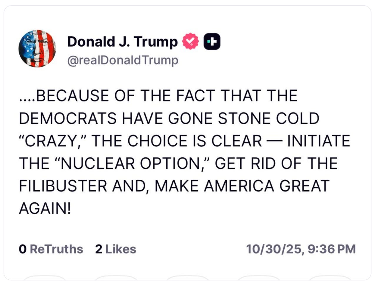 Well, with SNAP benefits about to expire and folks and folks and more folks about to go hungry, shit is about to hit the fan. Do I think Donald Trump actually cares about feeding the hungry? Ha. No. But does he care about his image and how he looks in the world? Desperately.
