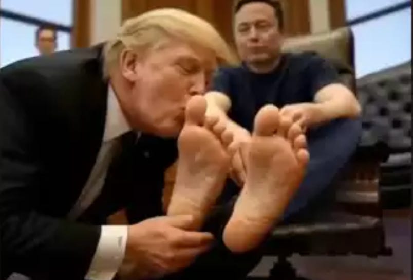 It’s an AI-generated Donald Trump, sucking the AI-generated feet of Elon Musk. And whether you find it disturbing (it is) or grotesque (also true) or just insanely weird (uh-huh), it also screams, “RESISTANCE!”