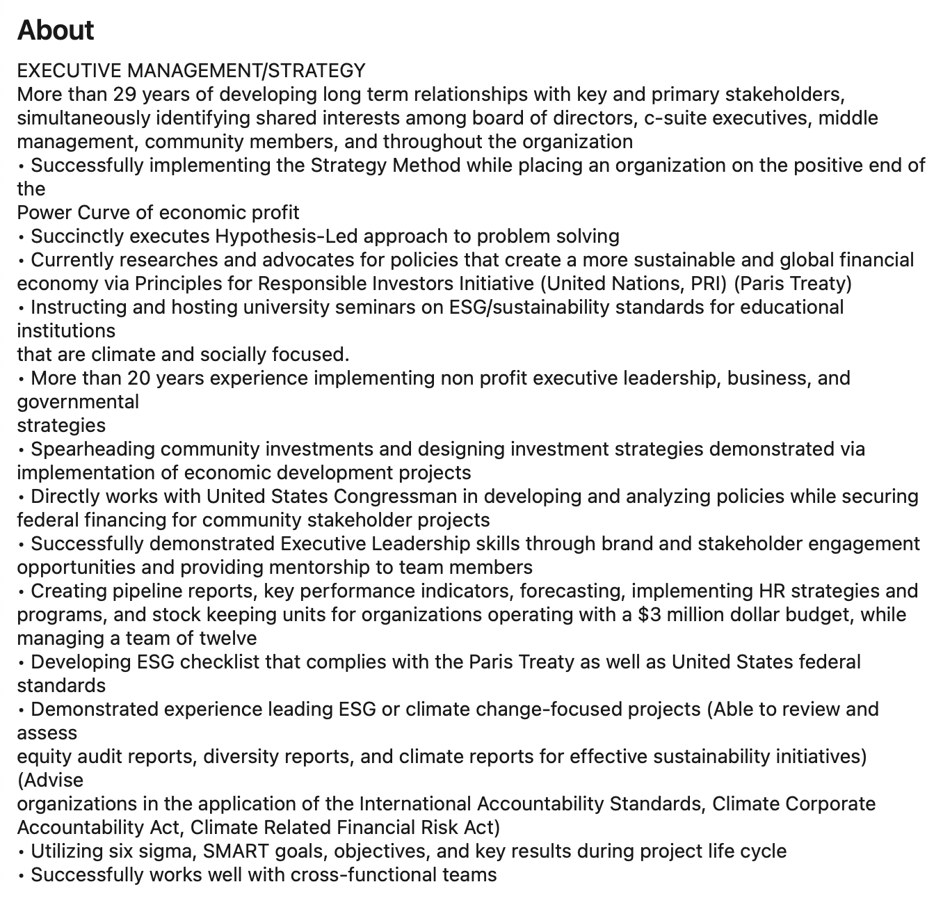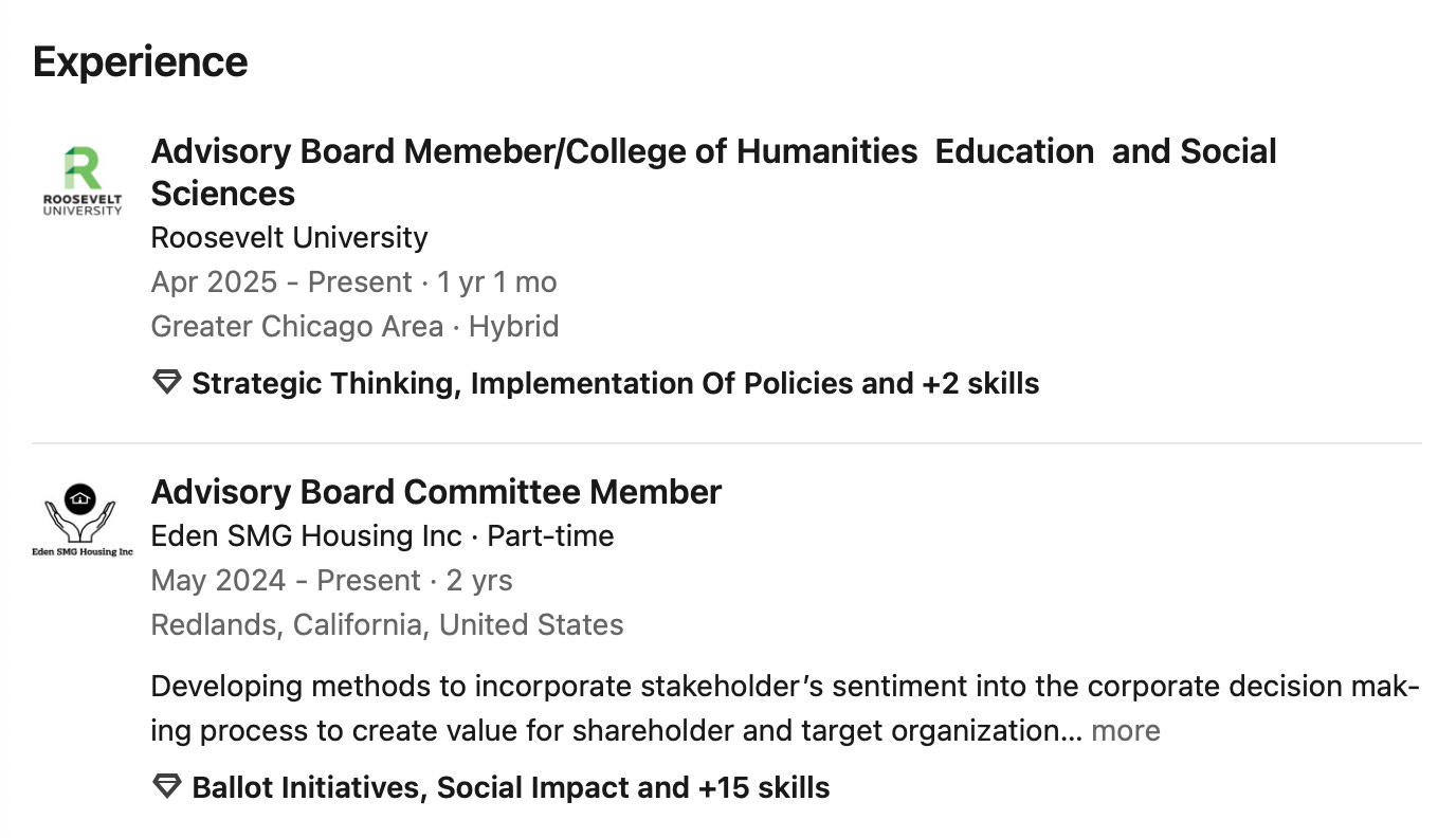 His first two EXPERIENCE listings involve recent advisory roles …