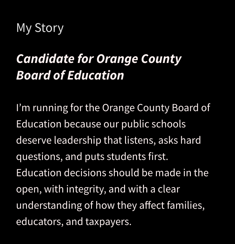 He is running for a position on the Orange County Board of Education—area five
