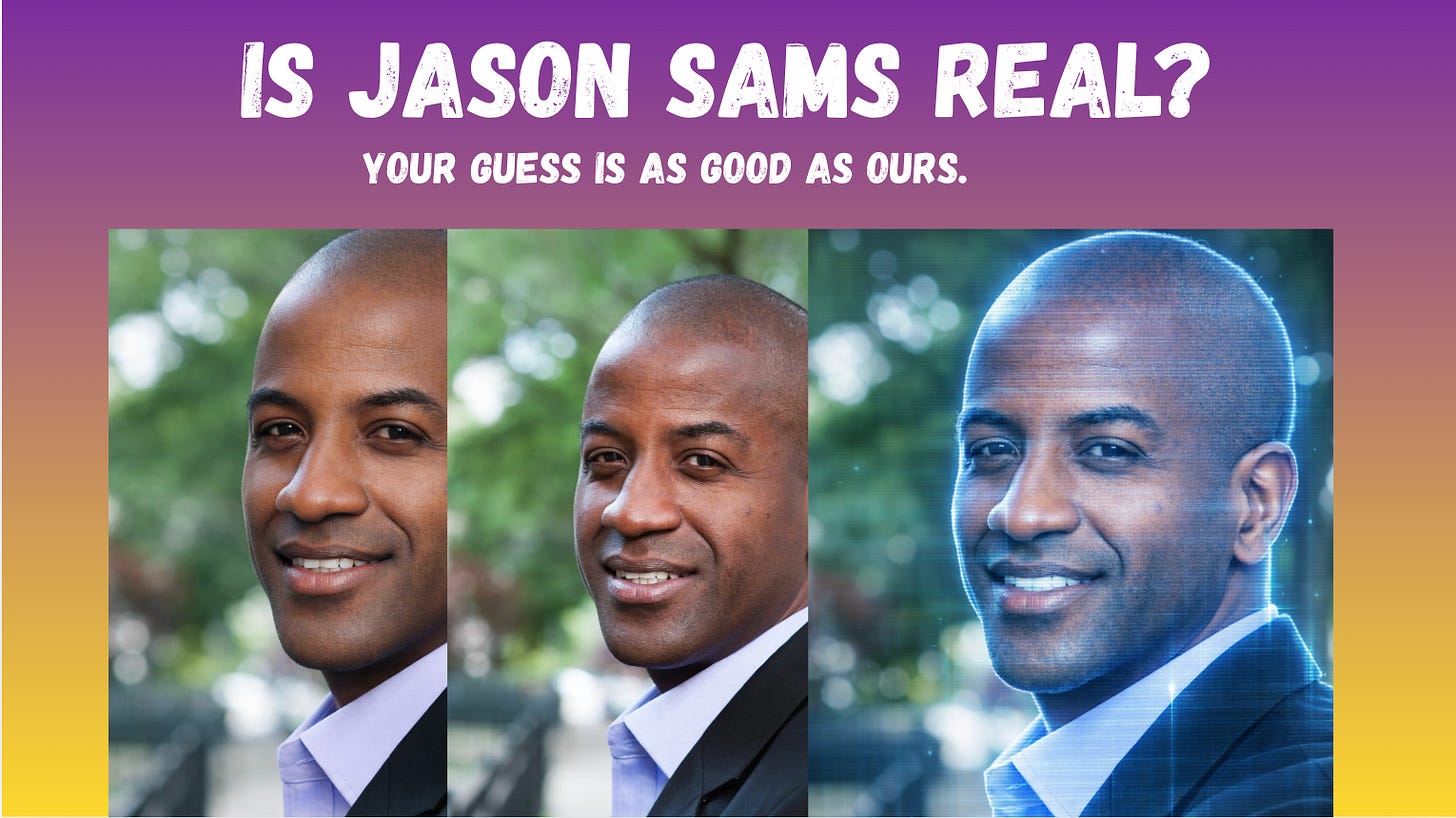 Is Jason Sams real, AI or hologram?