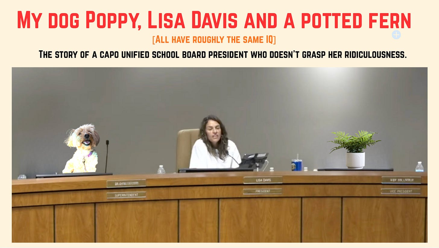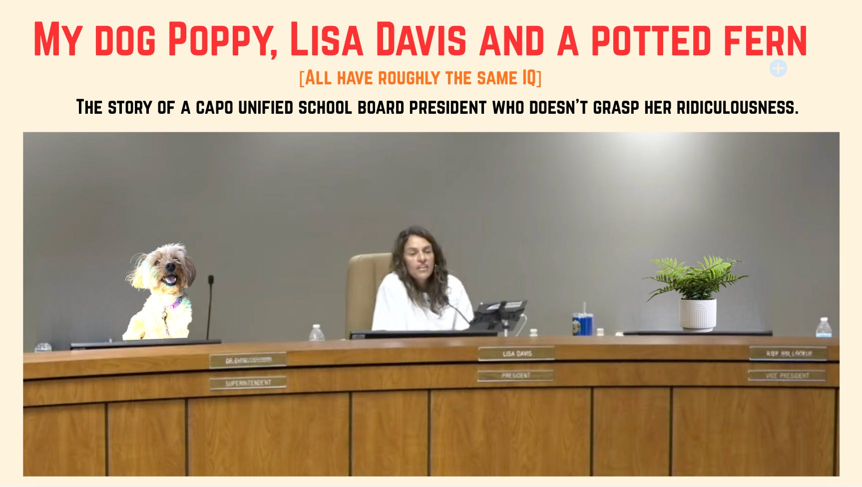 The Capo Unified School Board president is as intellectual as my dog, Poppy (and Poppy sometimes eats her own poop).