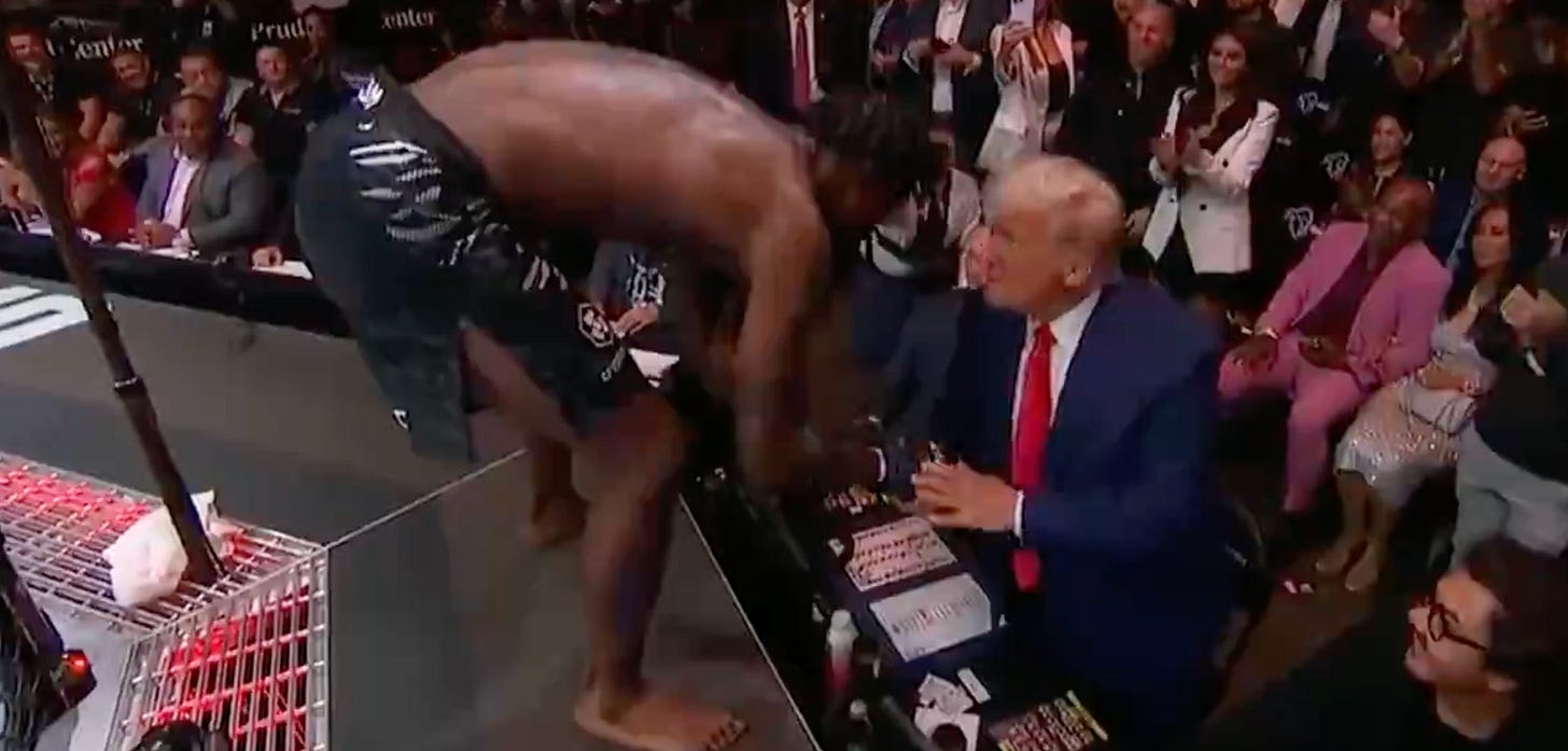 And the President of the United States is at a UFC fight. Because he needs to be famous.