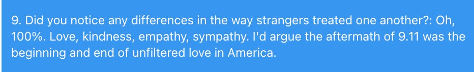 In our grief, we bonded. People of all races, ages, ethnicities, sexualities. For a brief period in time, nothing else mattered but love and collective healing. We were New Yorkers. We would move forward. We would get through this together.