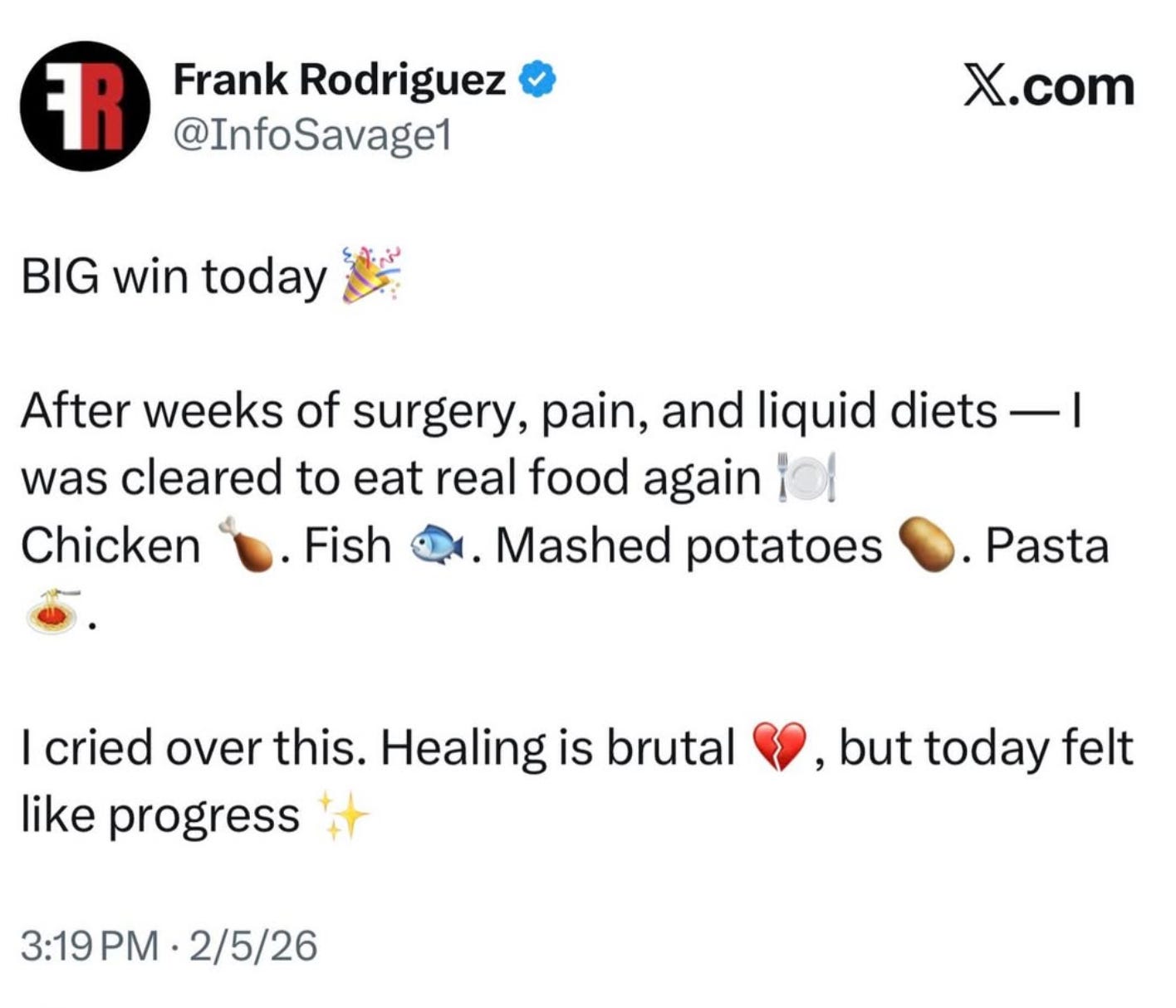 I have no idea whether Frank Rodriguez is that guy, but in his Instagram video I saw a very scared, very human young man desperate for a return to health.